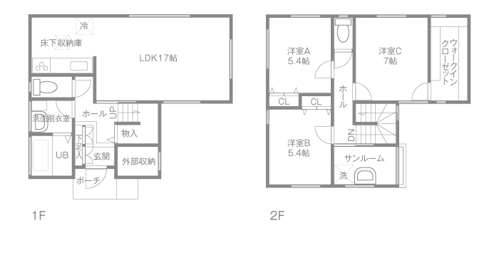 3SLDK(LDK17、洋5.4、洋5.4、洋室7)