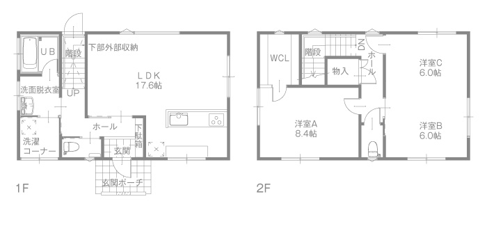 3SLDK(LDK17.6、洋室A8.4、洋室B6.0、洋室C5.2)